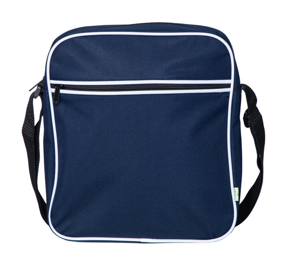 • Stof gemaakt van gerecycled polyester garen • Kleine schoudertas • Witte bies rond voorkant en...meer