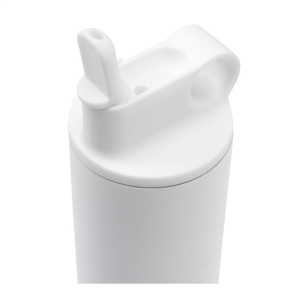 Dubbelwandige, lekvrije waterfles/thermosfles van gerecycled RVS. Afgewerkt met een mooie coating. De elegante fles is voorzien van een schroefdop in een matchende kleur, een inklapbaar mondstukje en afsluitbaar rietje. Dankzij de handige draagring neem je de fles gemakkelijk mee. Geschikt voor koude dranken en ideaal tijdens sportieve activiteiten. Niet vaatwasserbestendig. RCS-gecertificeerd. Totaal gerecycled materiaal: 83%. Inhoud 800 ml. RVS kan vele malen gerecycled worden terwijl de kwaliteit van het materiaal grotendeels behouden blijft. Door het gebruik van gerecycled RVS worden minder nieuwe grondstoffen gebruikt. Dit betekent minder energieverbruik en minder gebruik van water. Per stuk verpakt.