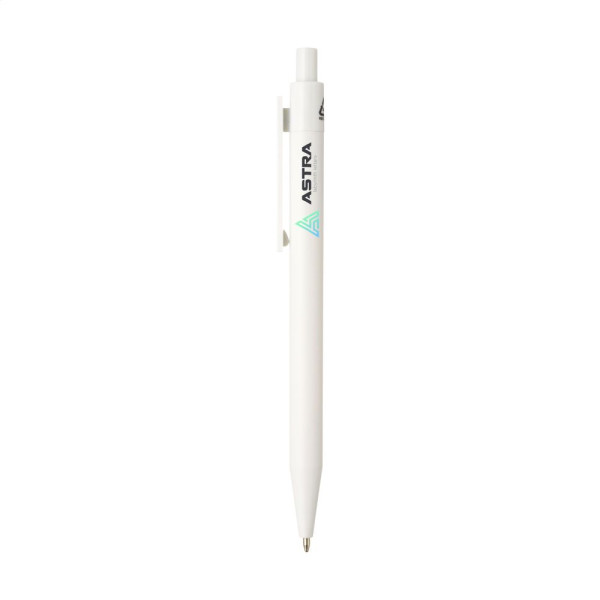 Blauwschrijvende balpen met een strak gevormde houder van 100% GRS-gecertificeerd gerecycled ABS. Met een royale clip voor een opvallende opdruk. GRS-gecertificeerd. Totaal gerecycled materiaal: 83%.