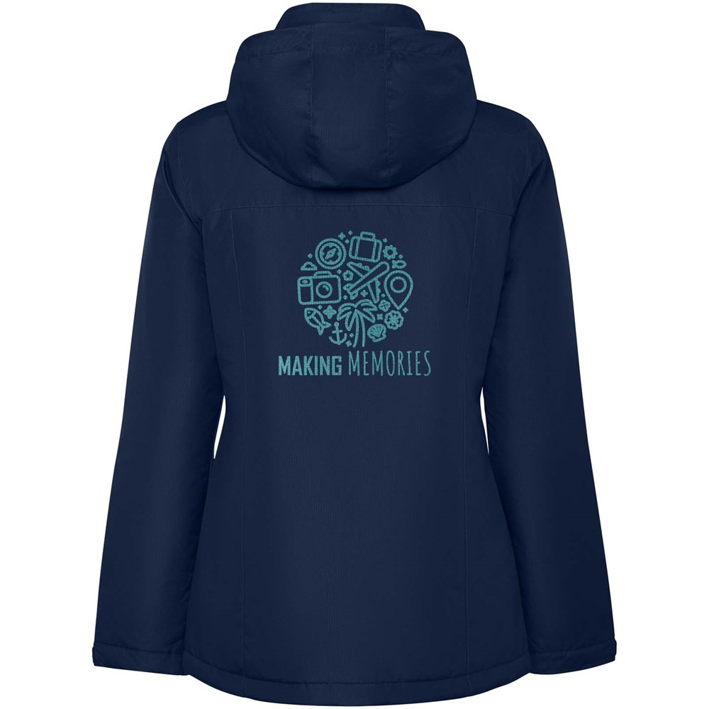 Waterdichte gewatteerde parkajack voor dames. Slanke pasvorm. Hoge kraag met omgeslagen en...meer