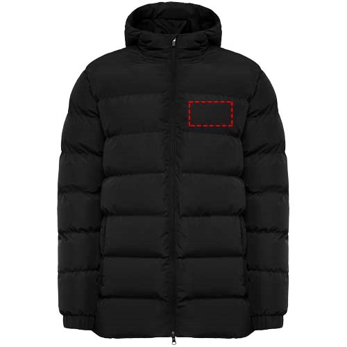 Gevoerde sportparka. Capuchon met klep. Rits aan de voorkant met bijpassende trekker en kinbeschermer. Elastische manchetten. Twee zijzakken met rits. Binnenzak links op de borst. Binnentoegang voor herverwerking. Verwijderbaar etiket. Waterbestendig. Winddicht.