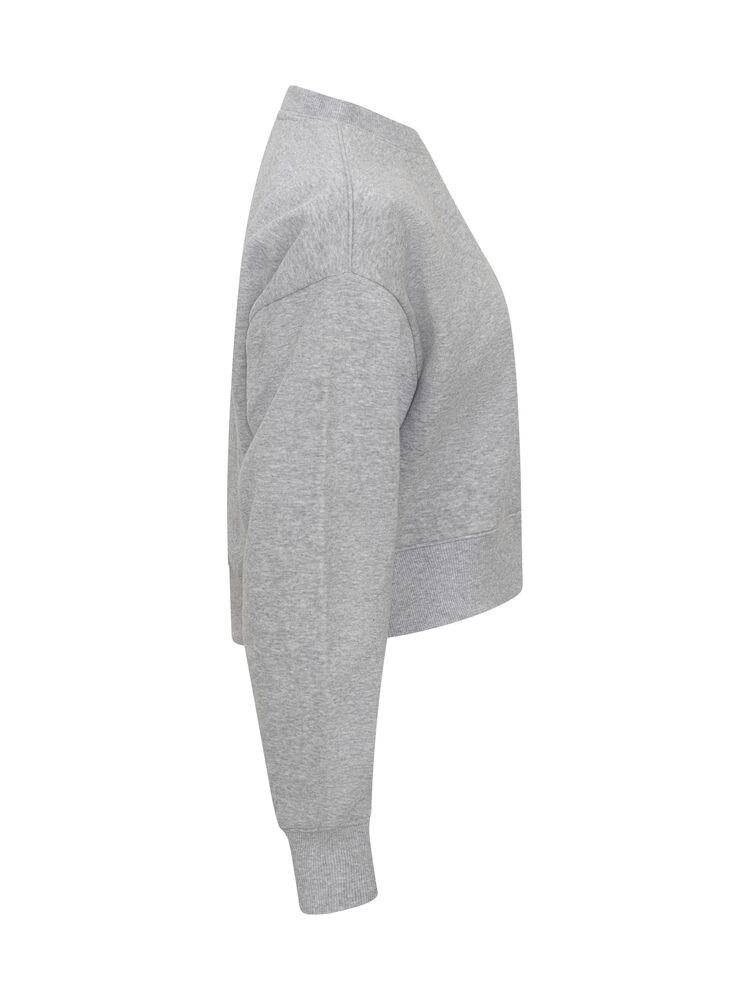 Een ontspannen cropped trui gemaakt van een mix van katoen en gerecycled polyester. Onderkant van de mouw, de zoom en de hals zijn professioneel afgewerkt met een elastische 2x2 rib en enkele stiksels. Voorzien van een necktape van keperstof en gemakkelijk te verwijderen label voor rebranding. De zachte, gestabiliseerde stof is geschikt voor intensief wassen en heeft een anti-pilling afwerking.