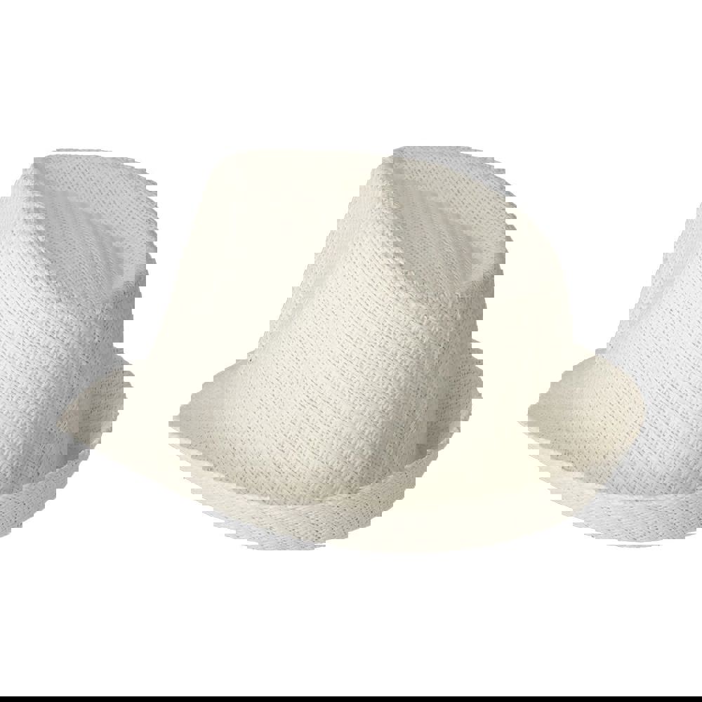 De hoed heeft een luchtige, natuurlijke uitstraling die perfect past