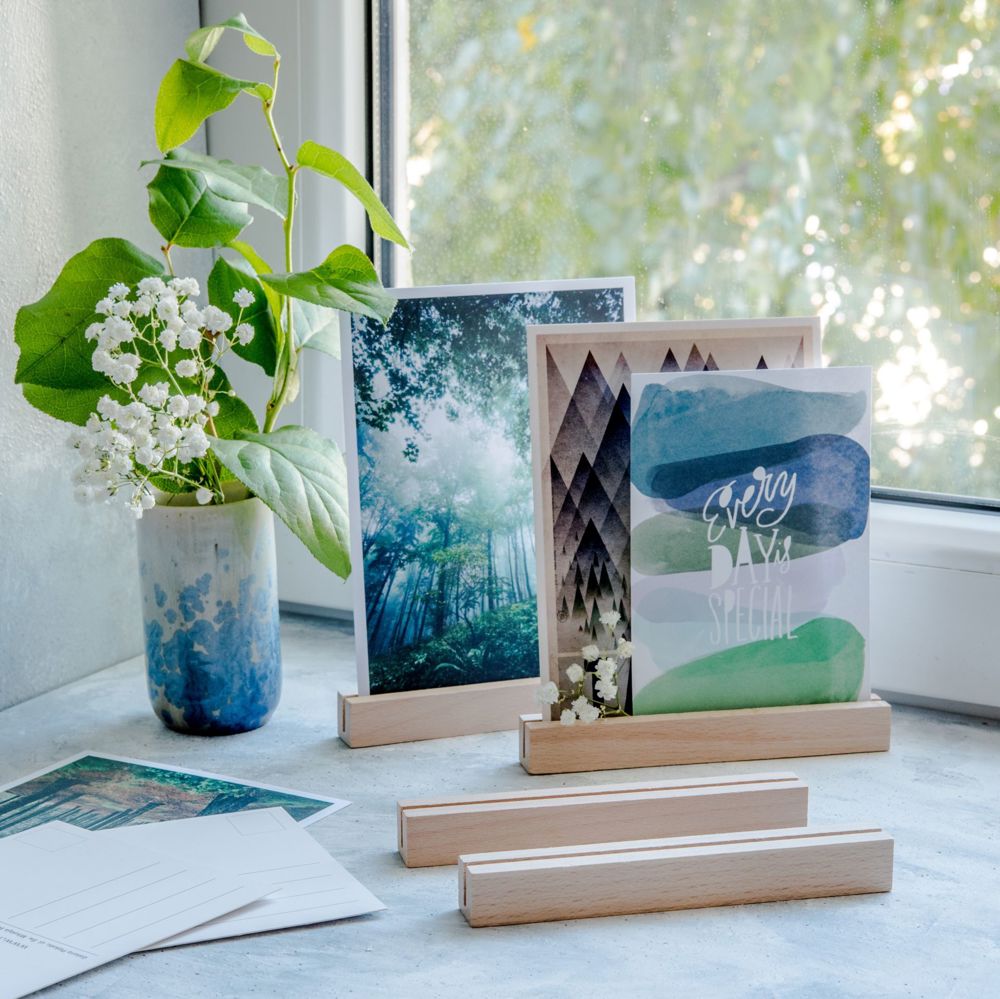 Ansichtkaarthouder uit beukenhout 150×20×20 mm, onbehandeld