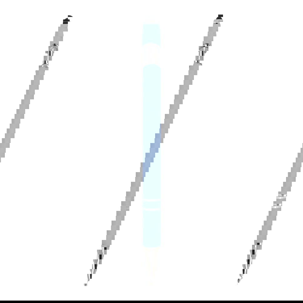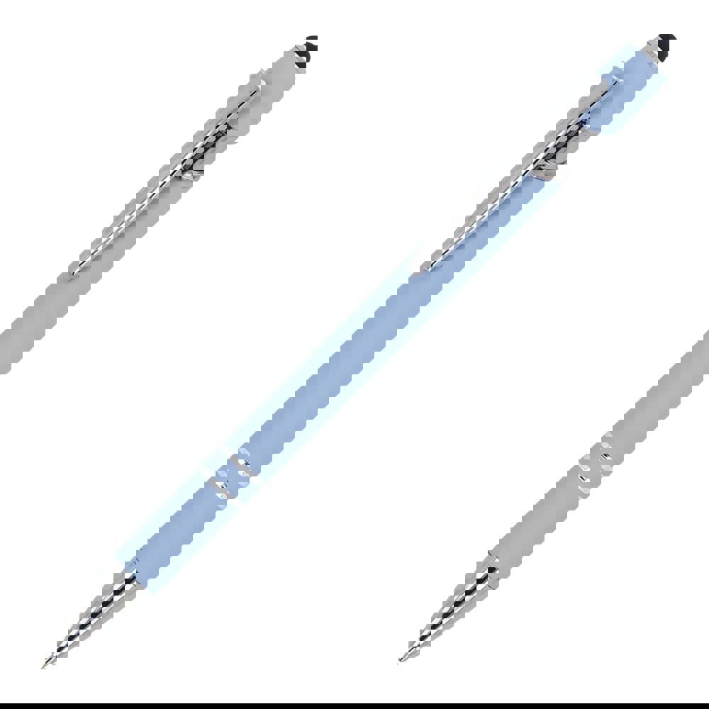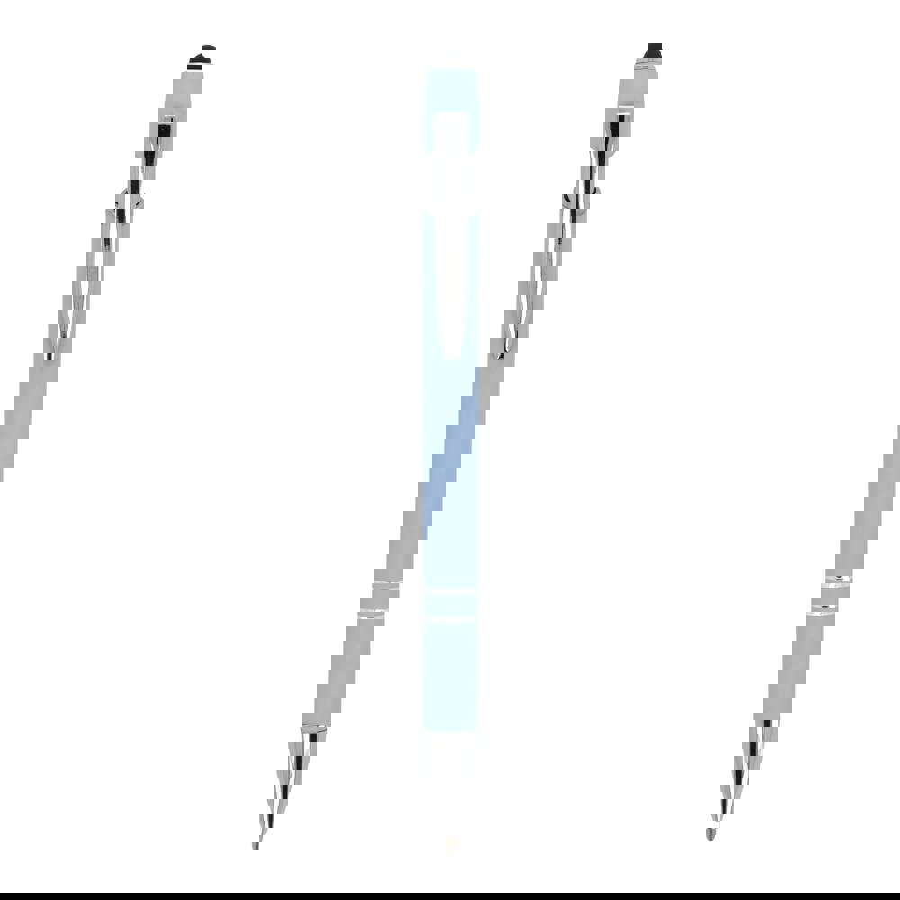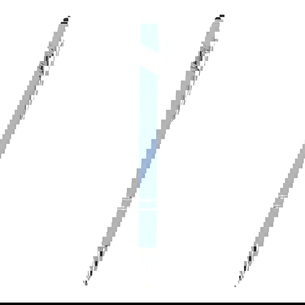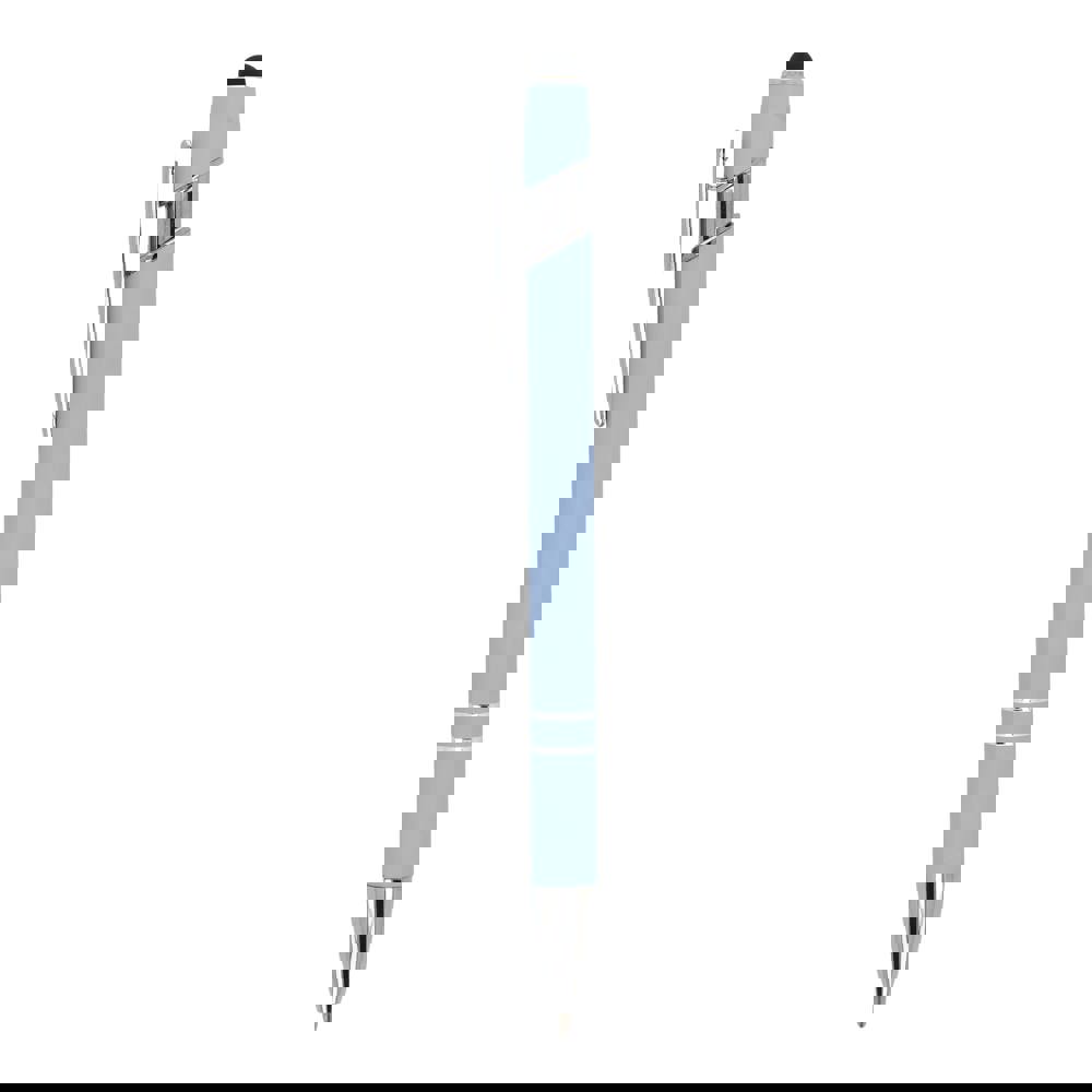 Aluminium balpen met elegante soft-touch afwerking en stylus. Met een solide metalen clip. Schrijfkleur: blauw.