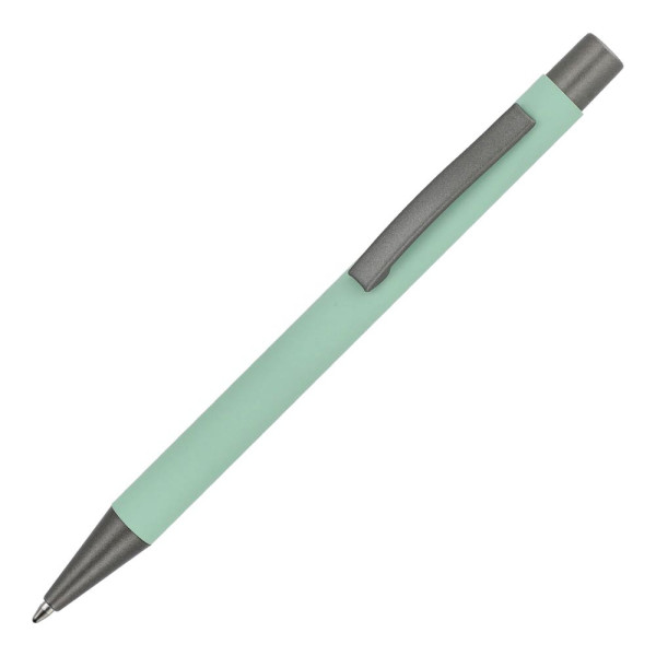 Aluminium balpen met elegante rubberised soft-touch afwerking. Voorzien van stevige metalen clip...meer