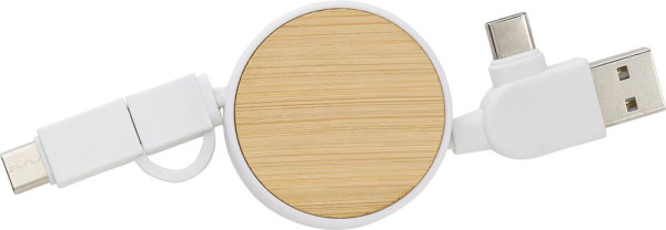 ABS uitschuifbare oplaadkabel met bamboe details. Met USB-C, lightning en USB-A. Individueel...meer