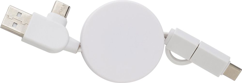 ABS uitschuifbare oplaadkabel met bamboe details. Met USB-C, lightning en USB-A. Individueel...meer