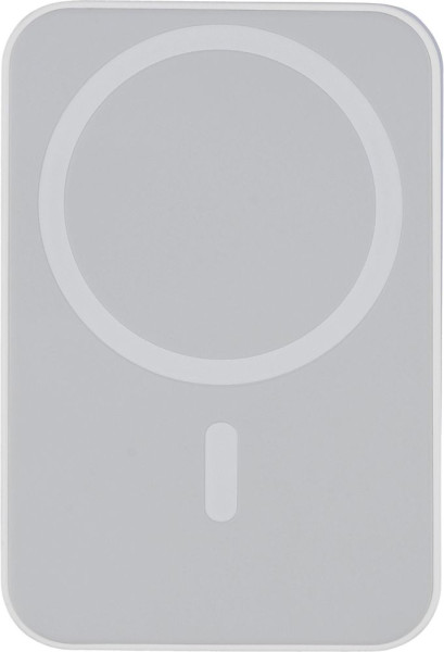 Gerecyclede ABS draadloze oplader-powerbank met 5.000?mAh Li-ion batterij en 15W magnetische draadloze oplaadoutput (compatibel met MagSafe). Type-C ingang tot 20W en Type-C uitgang: DC5V/3A, DC9V/2,22A, DC12V/1,67A. Voorzien van bescherming tegen oververhitting, kortsluiting, overspanning en overstroom. Stopt automatisch bij oververhitting. Inclusief extra metalen ring met zelfklevende achterkant voor draadloos opladen van niet-MagSafe apparaten. Voorzien van label met gerecycleerd ABS (RABS)-logo aan de zijkant. Individueel verpakt in een bruine kartonnen doos met zijdepapier.