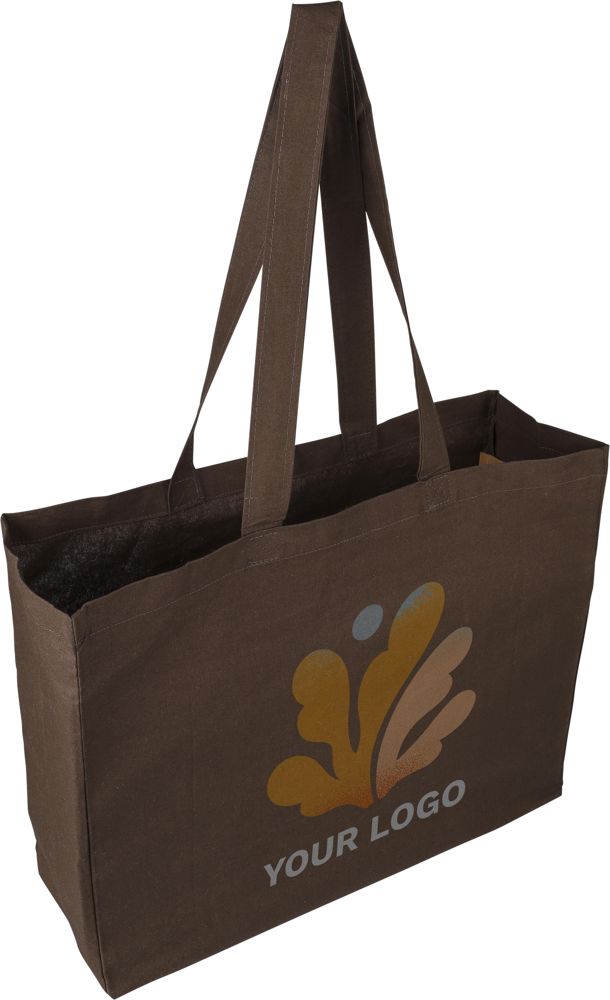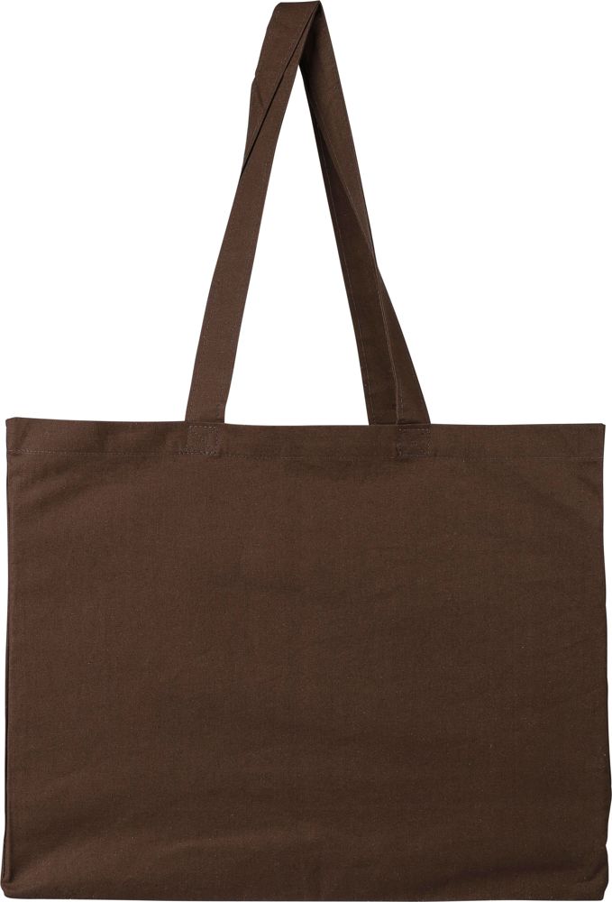 Katoen (18 g/m²) boodschappentas in D-vorm met een bodemvouw van 13 cm. Afmeting 43 × 34 cm. Lange hengsels (67 cm lang, 3 cm breed). Dit product is OEKO-TEX® STANDAARD 100 gecertificeerd.
