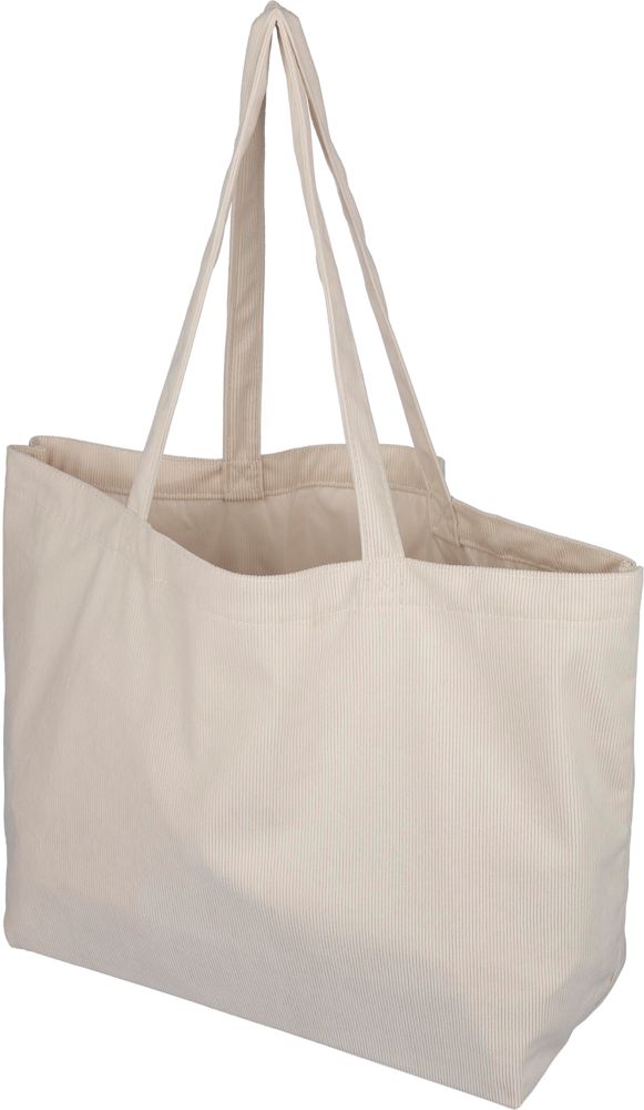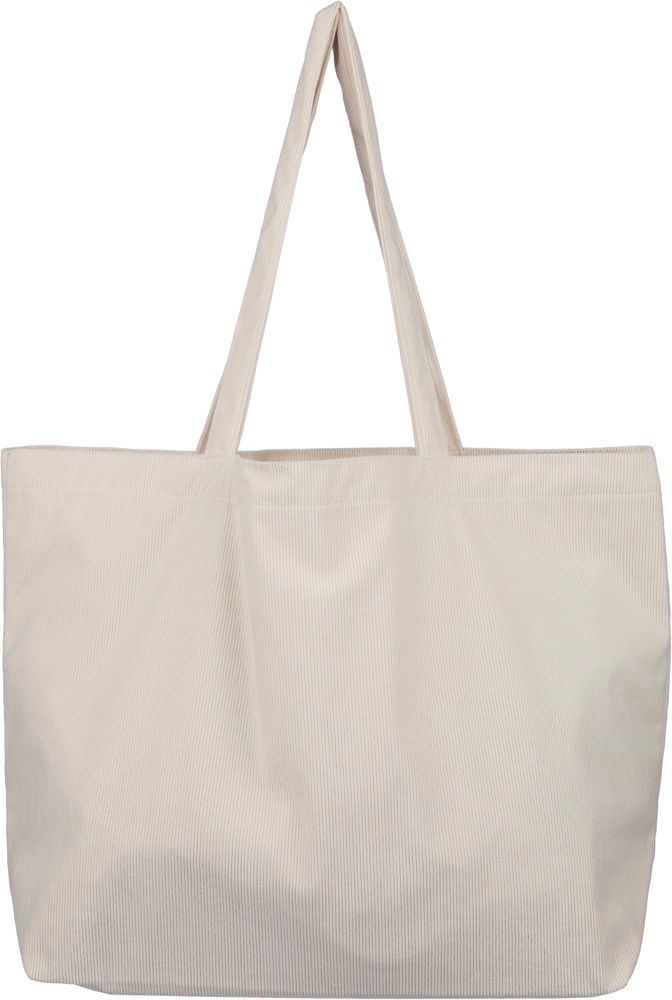 Corduroy draagtas met lange hengsels (2,5 × 60 cm). Voorzien van een ruim hoofdvak (51 × 15 × 33 cm) en een binnenvak (10 × 10 cm). Geschikt voor dagelijks gebruik.