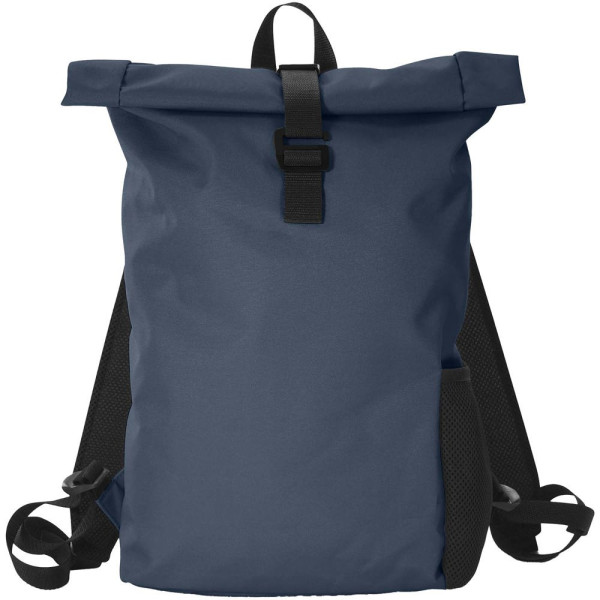 De Vanguard rugzak gemaakt van 240 g/m² gerecycled polyester (RPET), is ontworpen om je dagelijkse routine te ondersteunen met eenvoud en efficiëntie. Een speciaal gevoerd laptopvak biedt optimale bescherming, aangevuld met extra vulling aan de achterkant en onderkant voor extra comfort. De zwarte metalen gespsluiting zorgt voor veilig opbergen, terwijl het handige handvat aan de bovenkant en de verstelbare gewatteerde riemen zorgen voor een persoonlijke pasvorm. Een zijvak van gaas biedt snelle toegang tot essentiële spullen en een trolleypas op de achterkant maakt reizen gemakkelijker. Afmetingen: 58 x 37 x 9,5 cm. Gemaakt in Europa.