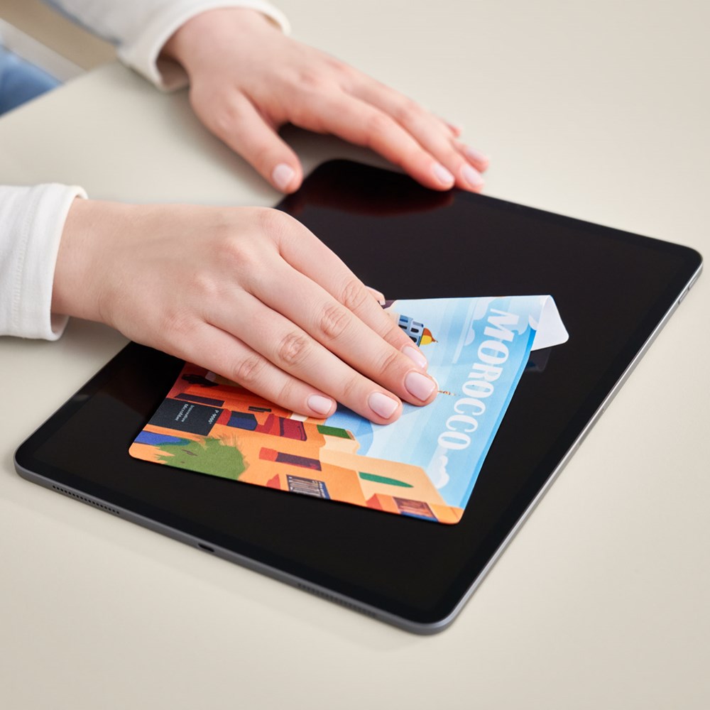 Het P-9000® Microvezel displaydoekje reinigt displays en touchscreens snel en streeploos, en dat keer op keer. Het pluisvrije doekje is niet alleen eenvoudig in het gebruik maar krast ook niet en gaat heel lang mee. Zijn fijne oppervlak zorgt voor een perfect afdrukbeeld – zo ziet uw reclame-opdruk in fotokwaliteit er bijzonder levendig en scherp uit, zonder dat dit van invloed is op de reinigende werking.