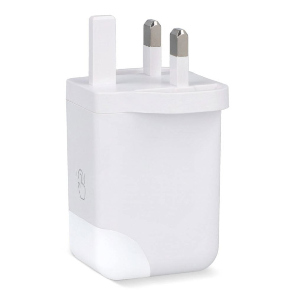Deze compacte 65W GaN-stroomadapter laadt laptops, tablets en smartphones op. Met een slim oplaadlampje dat uitgaat wanneer volledig opgeladen. De adapter heeft USB-A (max. 18W) en Type-C (max. 65W) poorten en levert efficiënt vermogen, zelfs bij gelijktijdig gebruik (9W per poort). Gemaakt van brandwerend gerecycled plastic.