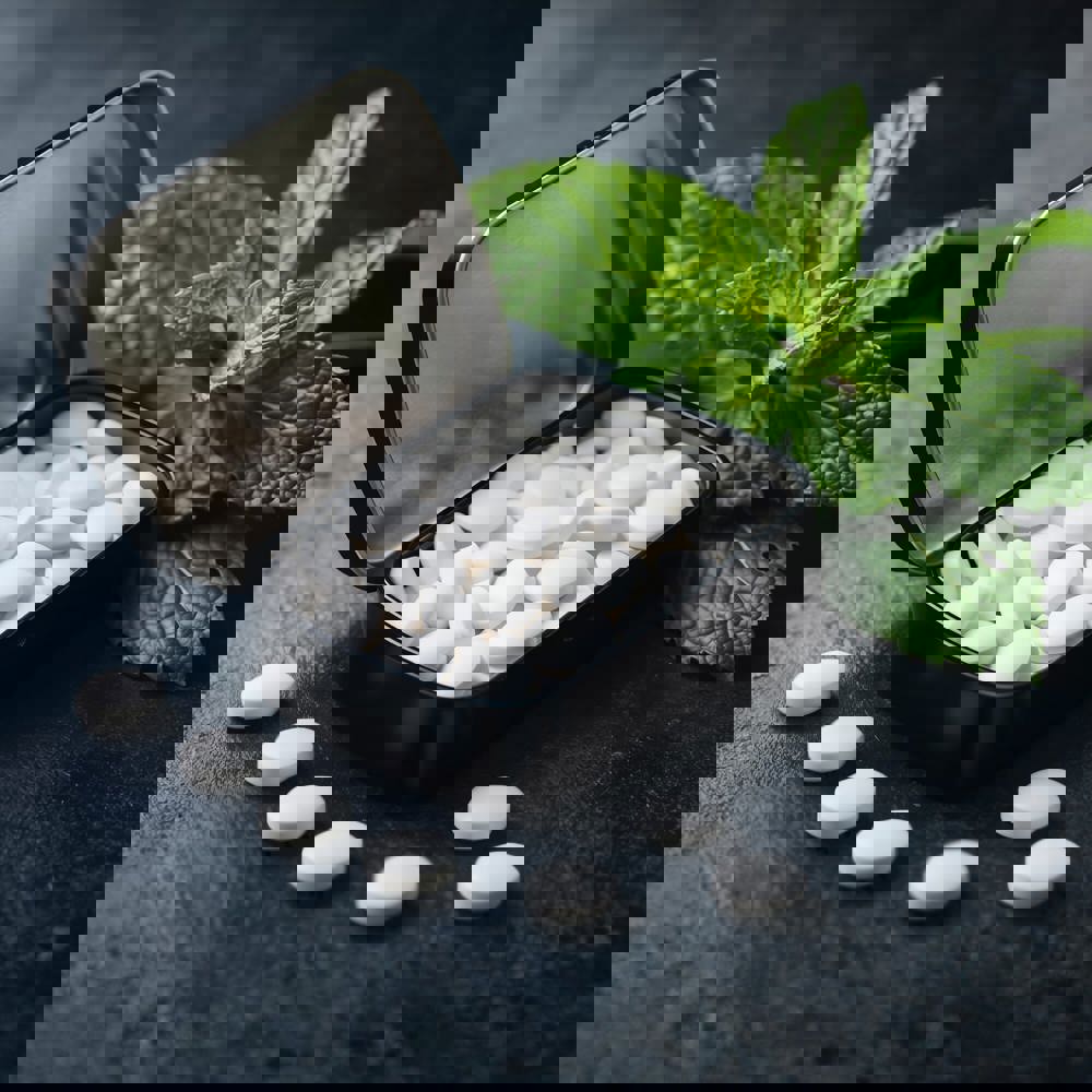 Scharnieren pepermuntblikje. Gevuld met 23 gram Europese pepermunt. Altijd verfrissende pepermuntjes bij de hand. Niet suikervrij.