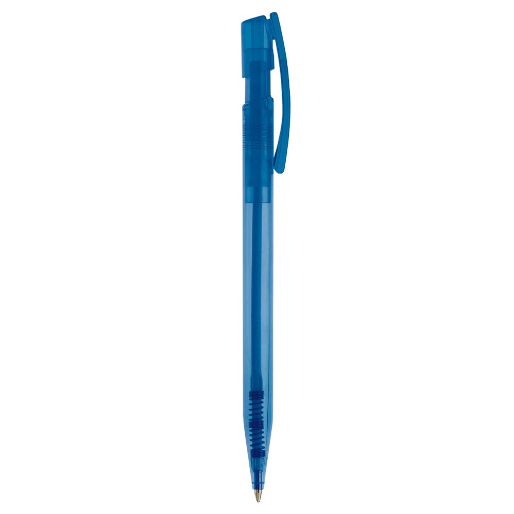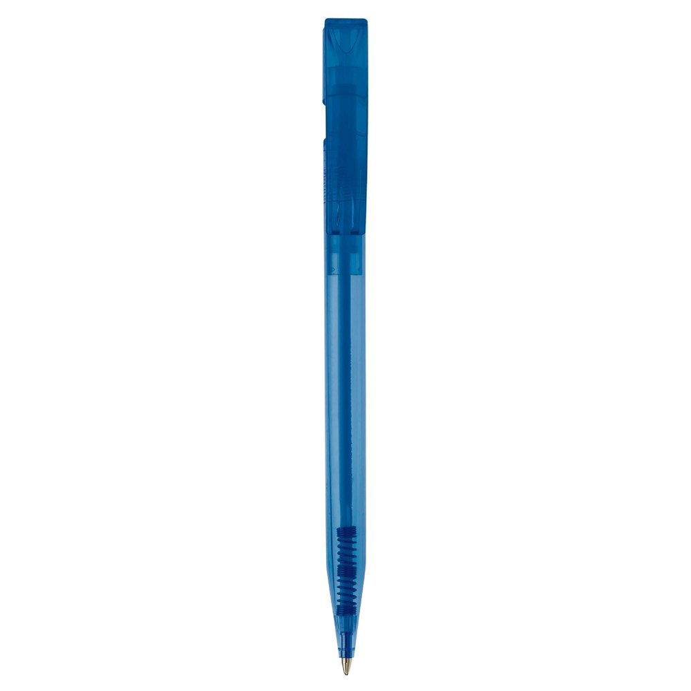 Toppoint design balpen, geproduceerd in Duitsland. Deze pen bevat een X20 vulling voor 2,5km schrijfplezier. Transparante pen met blauwschrijvende vulling.