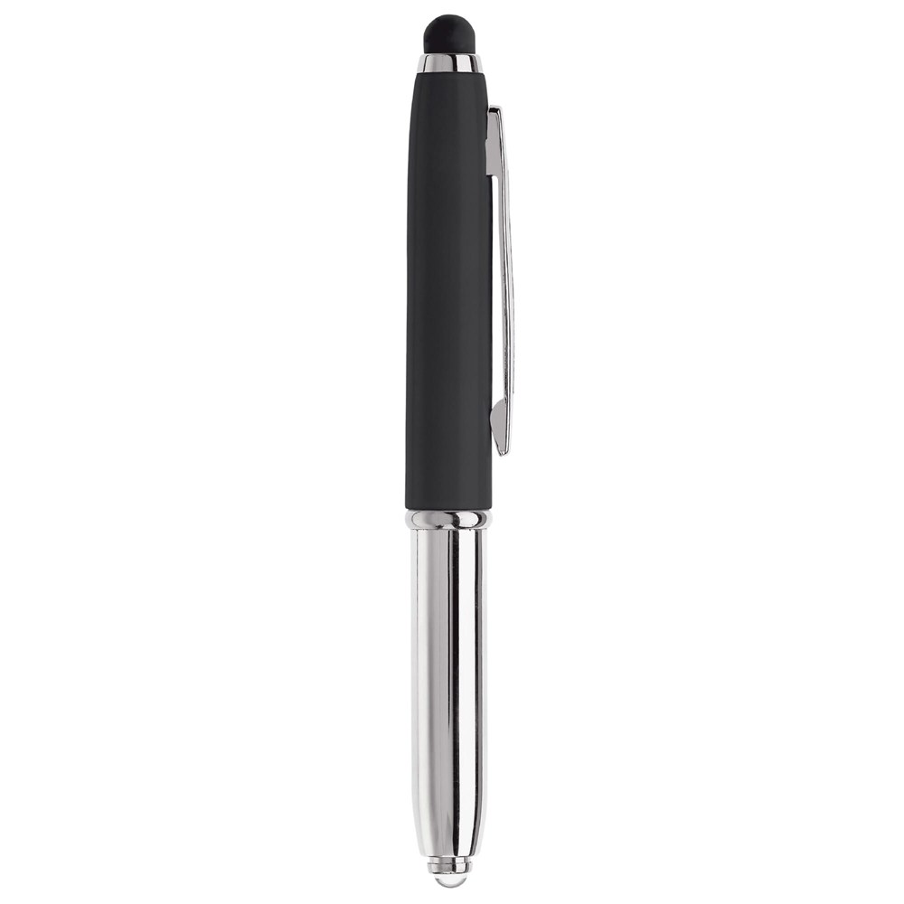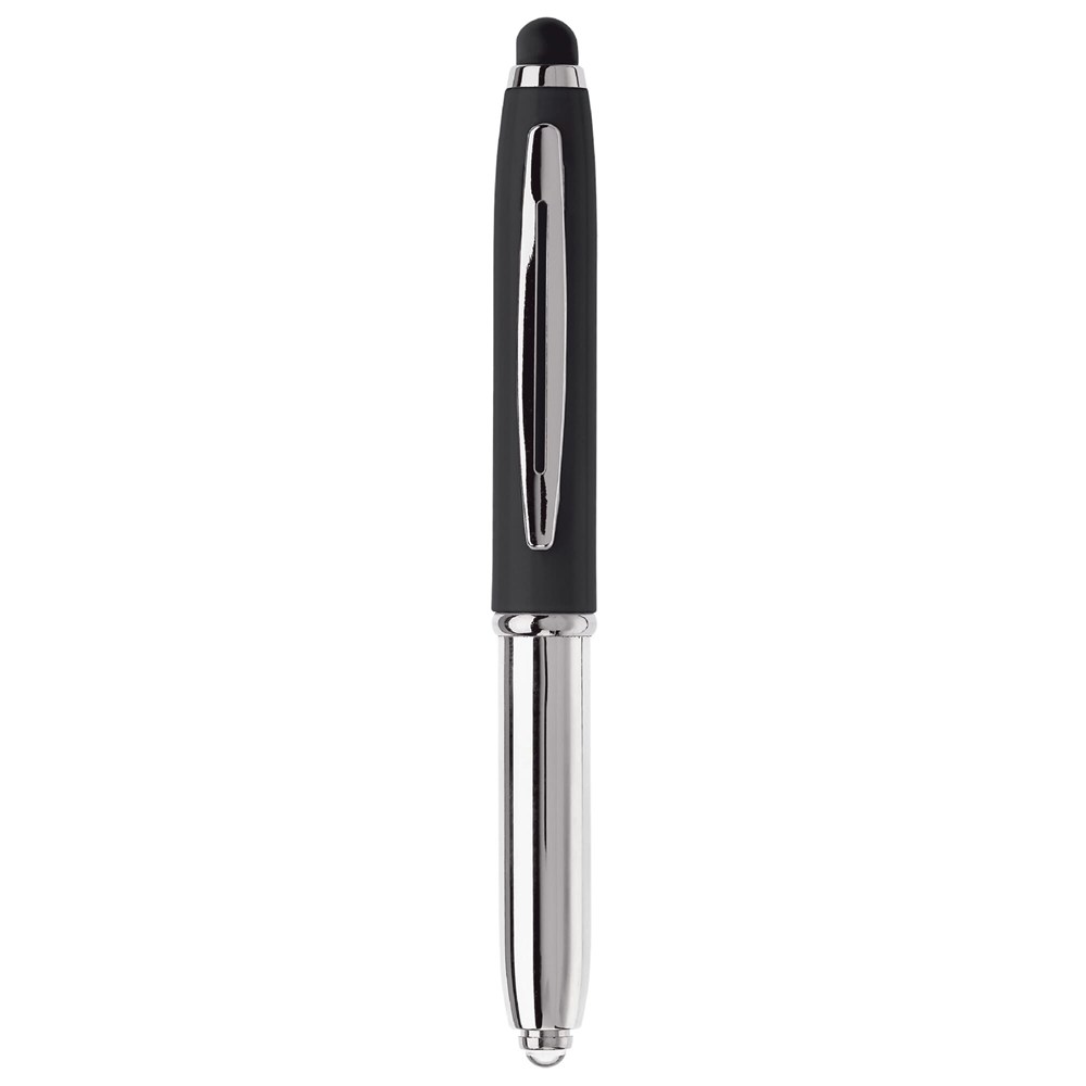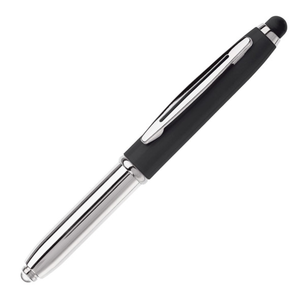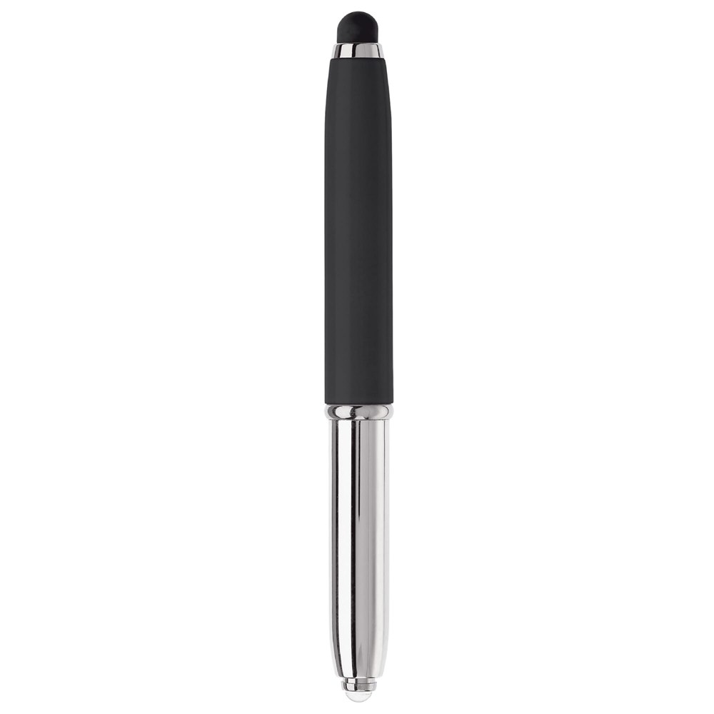 Touchscreen pen met lampje en balpen. Balpen te gebruiken door dop eraf te halen. Blauwschrijvend.meer
