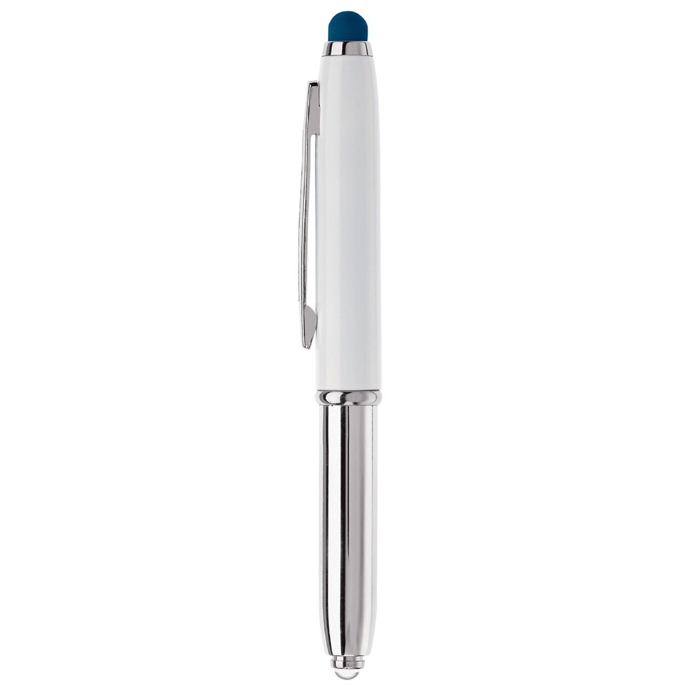 Touchscreen pen met lampje en balpen. Balpen te gebruiken door dop eraf te halen. Blauwschrijvend.meer