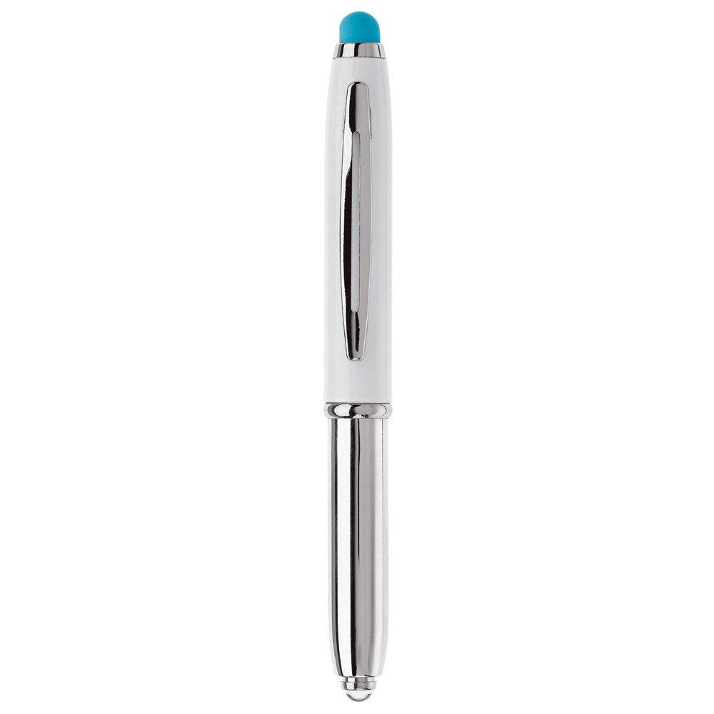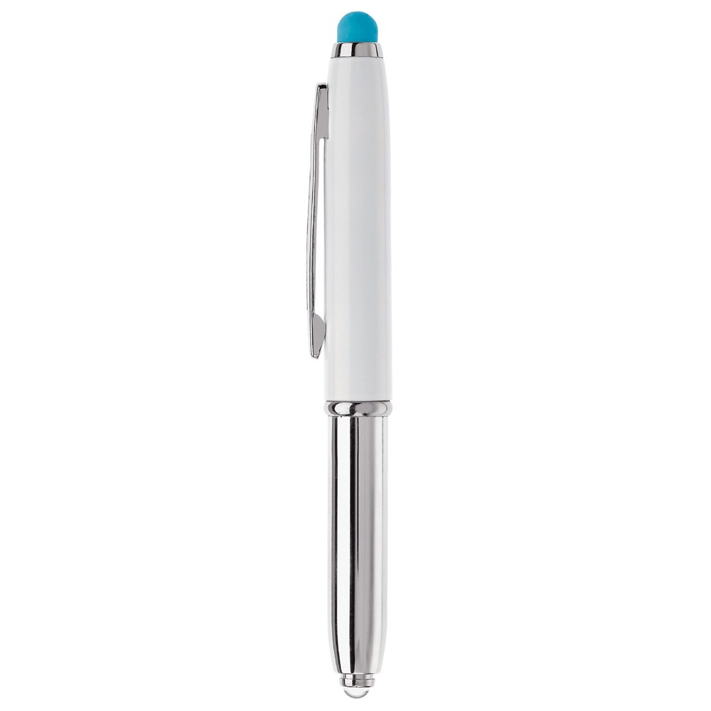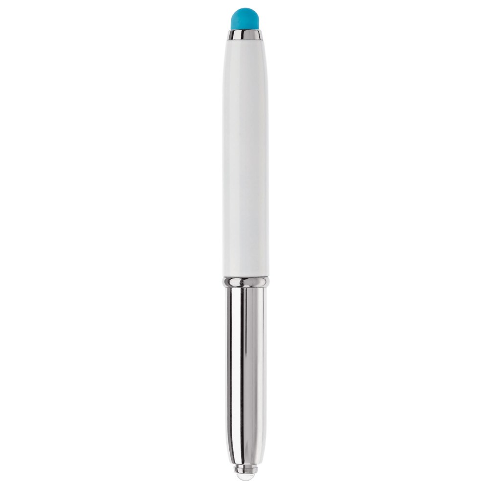 Touchscreen pen met lampje en balpen. Balpen te gebruiken door dop eraf te halen. Blauwschrijvend.meer