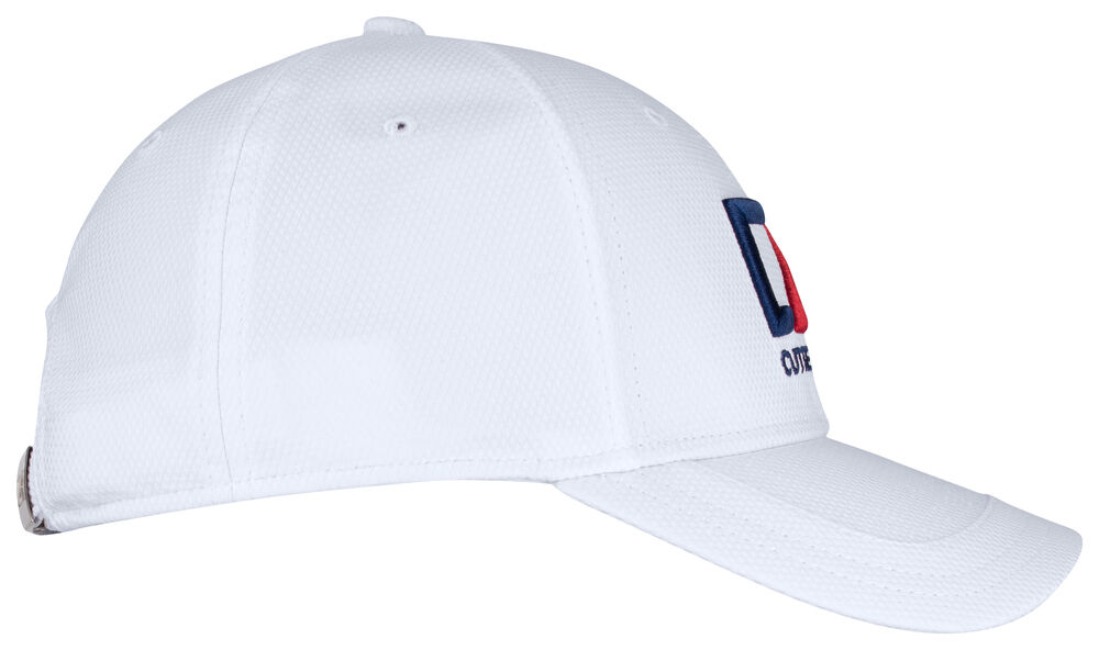 Cap in technisch gestructureerde stof maar met behoud van de klassieke look. Constructie met vijf panelen voor een geweldige vorm en extra ventilatiegaten voor transpiratie. Kenmerkend Cutter & Buck geborduurd logo aan de voorkant en metalen sluiting aan de achterkant voor eenvoudig verstellen.
