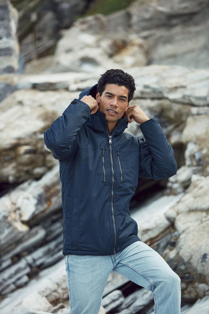 Moderne, gevoerde jas die bescherming biedt tegen wind en water. De jas heeft een moderne pasvorm...meer