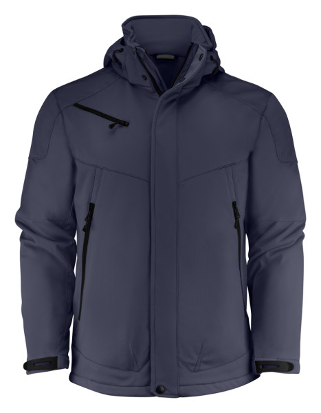Gevoerde softshell met afneembare capuchon, voorgevormde mouwen en trekkoord onderaan de zoom. De mouwen zijn verstelbaar met velcro. Voorzakken en borstzak met ritssluiting, twee binnenzakken met ritssluiting en één zak in membraanvoering. Standaard wordt deze jas geleverd met zwarte zippullers. De zippullers kunnen indien gewenst vervangen worden door één van de andere beschikbare kleuren.