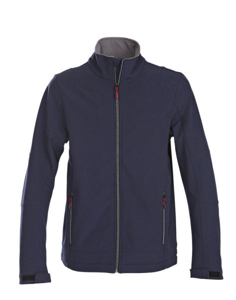Softshell jas met tweekleurige ritssluiting vooraan en zijzakken met ritssluiting. Aanpasbare mouwen met velcrosluiting en trekkoorden aan de boord onderaan. De zippullers kunnen indien gewenst vervangen worden door één van de andere beschikbare kleuren.