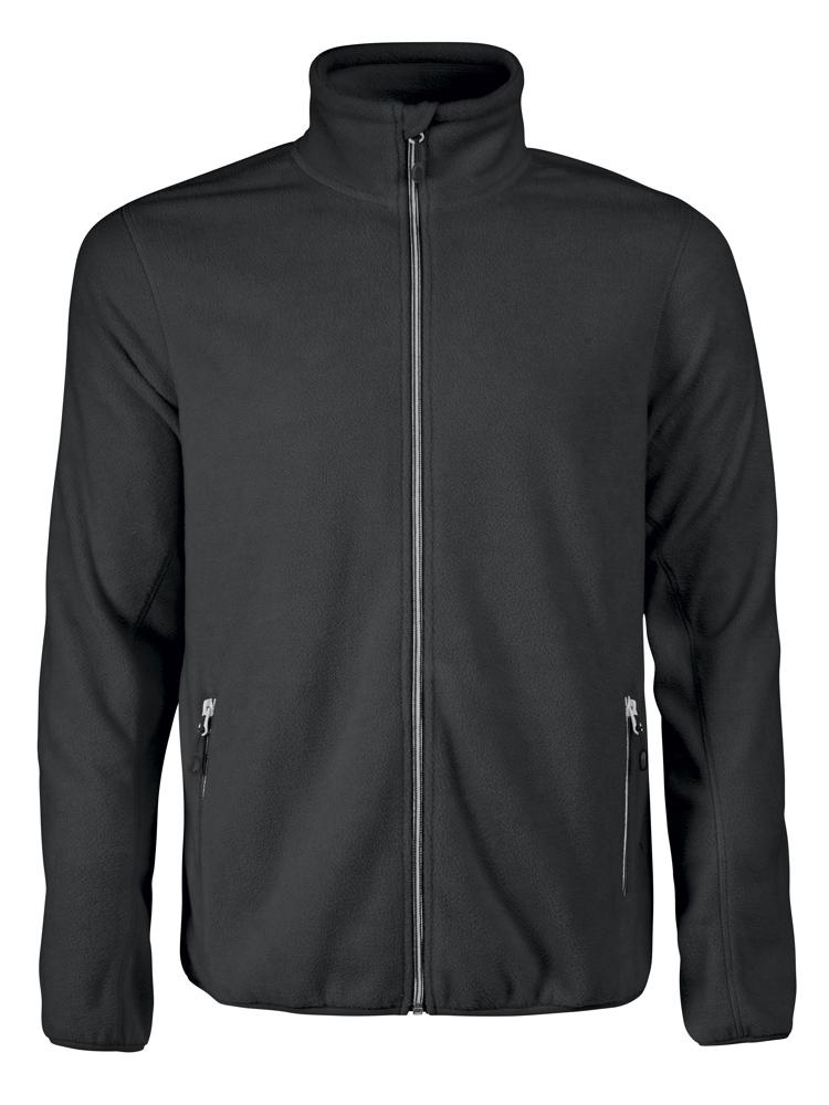 Geborstelde fleecejas met lange ritssluiting voor dames en heren. Geborsteld aan beide zijden. Twee voorzakken, contrasterende ritssluitingen en decoratieve stiksels op de mouwen. Elastische tape aan de boord onderaan en de manchetten.