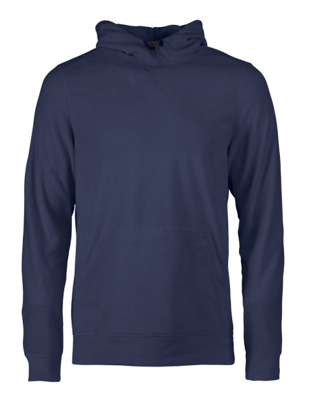 Hoody in microfleece met capuchon voor dames en heren. Kangoeroezak en elastisch trekkoord aan de capuchon.
