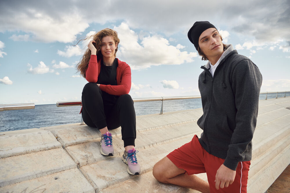 Eigentijds vest met capuchon en zeer comfortabele pasvorm. Het vest is gemaakt van hoogwaardige, zachte en gestabiliseerde kwaliteit die mooi blijft, ook bij intensief wassen. Het vest is afgewerkt met een rits, een oplossing voor een mobiele telefoon en een doorvoer voor een koptelefoon, necktape en 1x1 stretch rib in de boord en onderaan de mouwen. De behandeling met softener zorgt ervoor dat de sweater zacht aanvoelt.
