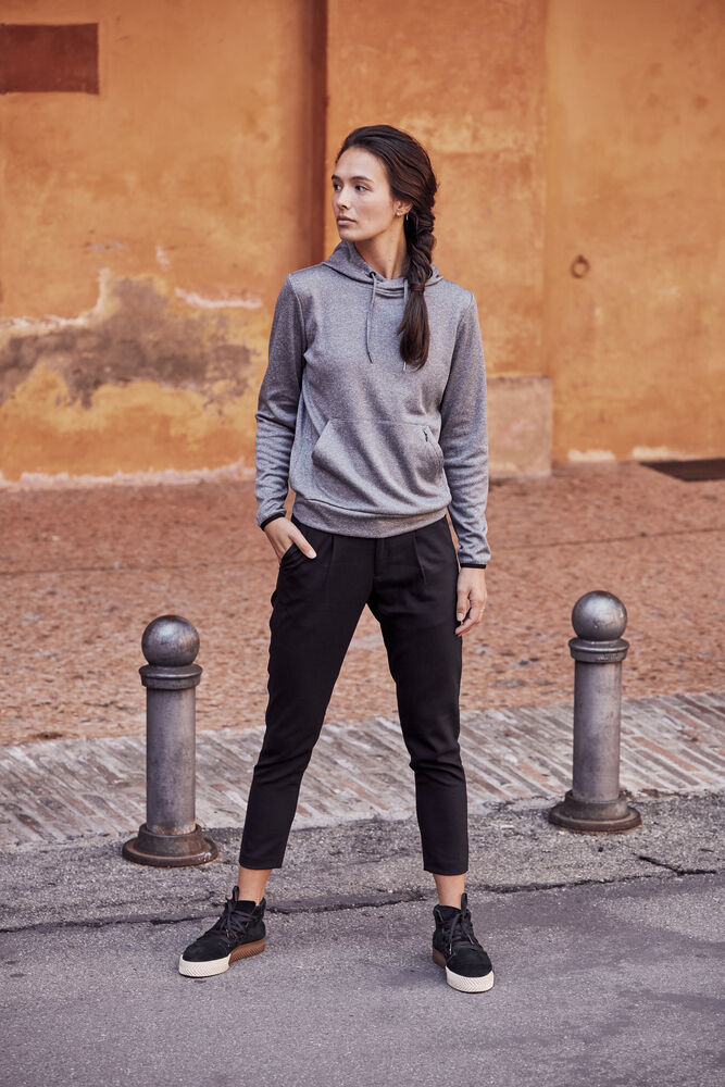 Hoogwaardige trui met capuchon en een moderne pasvorm. De trui is gemaakt van zacht, soepel en comfortabel polyester. De capuchon is gemakkelijk te verstellen middels een trekkoord. Verder heeft de trui een buidelzak op de voorzijde met een extra zak met rits. De behandeling met softener zorgt ervoor dat de trui zacht aanvoelt.