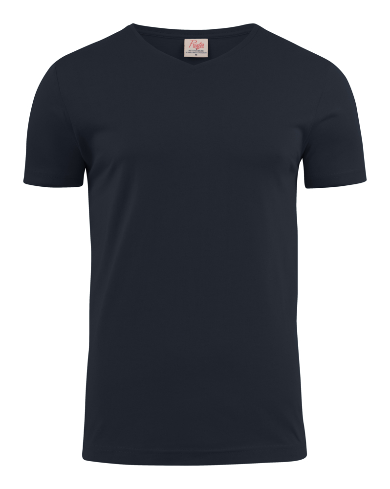 Moderne, aansluitende V-hals T-shirt met versterkte schoudernaden en dubbelgestikte halsopening. Elastaan in boord. Geribde nek in vier lagen. Oeko-Tex 100 gecertificeerd.