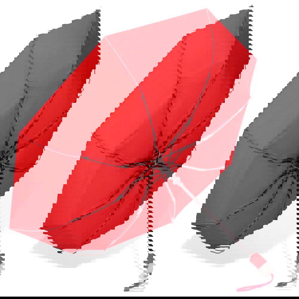 Opvouwbare paraplu met ergonomisch handvat. Het frame is deels gemaakt van glasvezel voor extra stevigheid. Het zwarte frame contrasteert mooi met het gekleurde pongee polyester doek van Pongee polyester. Wordt geleverd in een hoesje.