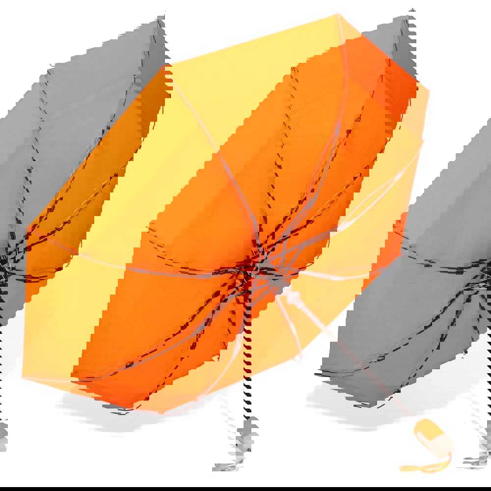 Opvouwbare paraplu met ergonomisch handvat. Het frame is deels gemaakt van glasvezel voor extra stevigheid. Het zwarte frame contrasteert mooi met het gekleurde pongee polyester doek van Pongee polyester. Wordt geleverd in een hoesje.
