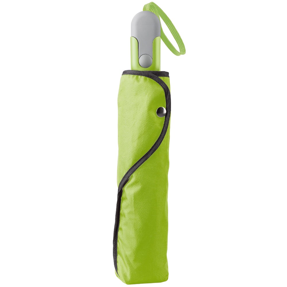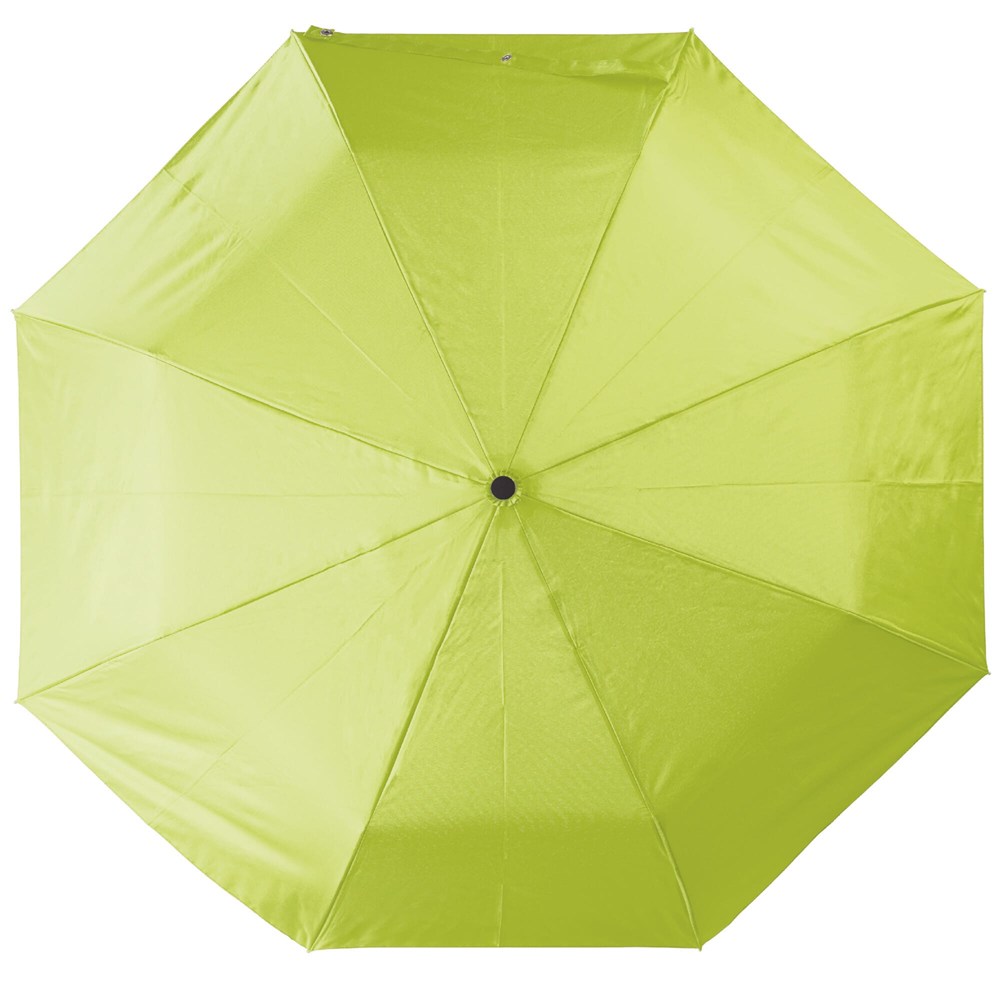 Opvouwbare paraplu met ergonomisch handvat. Het frame is deels gemaakt van glasvezel voor extra stevigheid. Het zwarte frame contrasteert mooi met het gekleurde pongee polyester doek van Pongee polyester. Wordt geleverd in een hoesje.